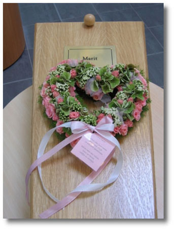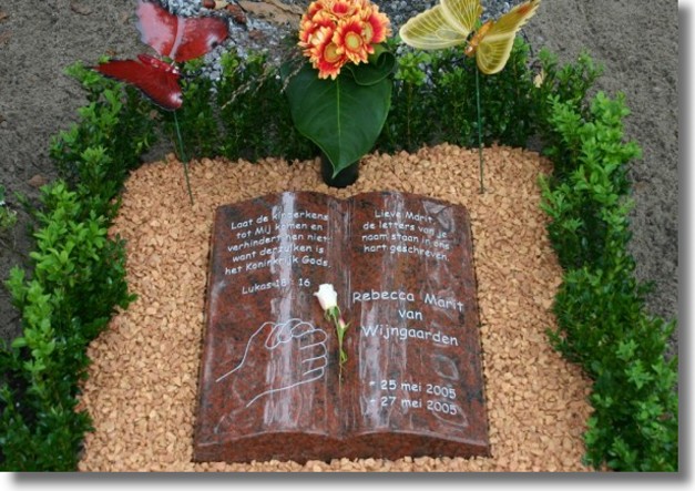 De dominee heeft op haar kamertje nog samen met ons voor ons en Marit gebeden. Daarna hebben we het kistje gesloten. Het sluiten van het kistje is een heel moeilijk moment geweest, het dringt dan tot je door dat dit de laatste keer is dat je je meisje nog kunt zien en daarna nooit meer. Koos droeg het kistje met Marit naar beneden en heeft haar achterin onze eigen auto geplaatst zodat wij als gezin naar de begraafplaats konden rijden.